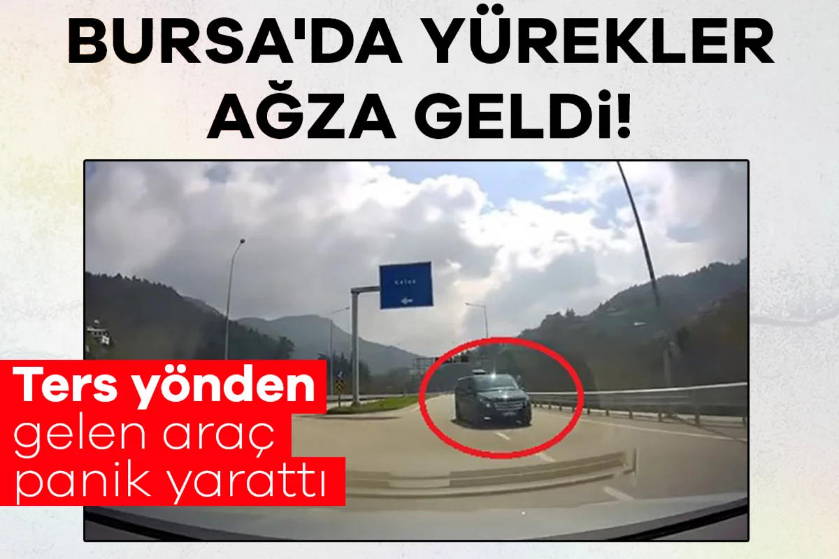 Bursa Orhaneli karayolunda ters yönden gelen minibüs, seyir halindeki bir sürücüyle kafa kafaya çarpışmanın eşiğine geldi. Yürekleri ağıza getiren o anlar araç kamerasına yansıdı.