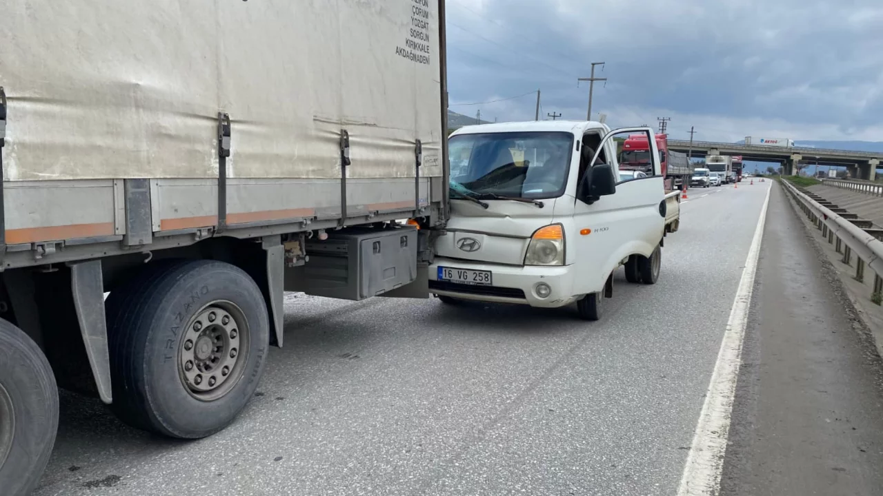 Bursa'da, Orhangazi-Gemlik yolu üzerinde bir TIR, bir kamyonet ve bir otomobilin karıştığı zincirleme trafik kazası meydana geldi. Kazada yaralanan olmazken, araçlarda maddi hasar oluştu.