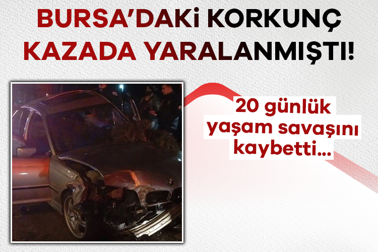 Bursa'da kontrolden çıkan otomobilin kaldırımdaki trafik levhasına ve ağaca çarpması sonucu meydana gelen kazada ağır yaralanan 2 kişiden biri, kazadan 20 gün sonra hayatını kaybetti.