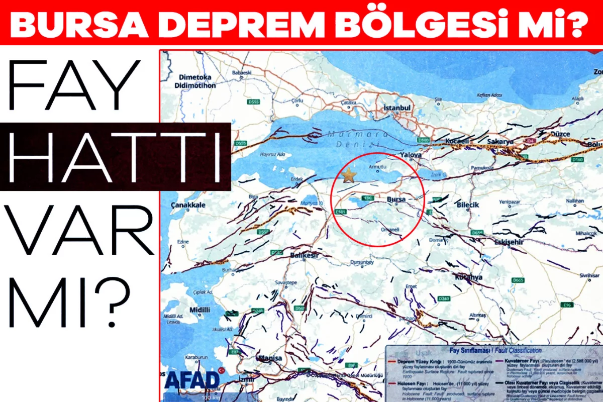 Bursa'da deprem üretme potansiyeline sahip aktif fay hatları bulunuyor. Bunların başında, doğuda Derecikızık ve Burhaniye çevresinden başlayıp batıda Uluabat Gölü'ne kadar uzanan yaklaşık 45 kilometrelik Bursa Fayı geliyor.