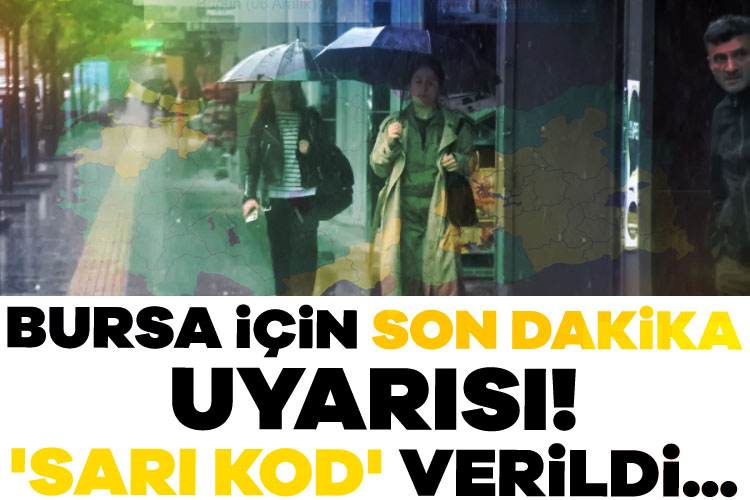 Kış Bursa'nın kapısını çalmaya başladı. Meteoroloji Genel Müdürlüğü, Bursa'da yarın kuvvetli sağanak yağış beklendiği duyurarak sarı kodlu uyarı yaptı. Yapılan uyarıda, " Aralıklı ve yerel olarak kuvvetli sağanak yağış beklendiğinden sel, su baskını, ulaşımda aksamalar gibi olumsuzluklara karşı dikkatli ve tedbirli olunmalıdır. Geçerlilik periyodu: 07 Aralık 12.00- 07 Aralık 23.59" ifadeleri yer aldı.