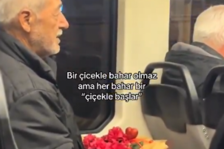 Metroda elinde çiçeklerle oturan bir amcayı paylaşan vatandaşın videosu sosyal medyada gündem oldu.