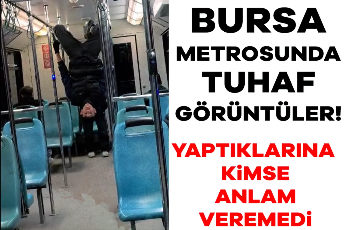 Bursa metrosunda gece saatlerinde çekilen bir görüntüde seyir halindeki metroda tuhaf hareketler yaparak çevreye rahatsızlık veren gençler kayda alındı.