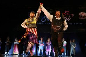 Bursa Nilüfer Belediyesi Halk Dansları Topluluğu'nun Anadolu'nun yanı sıra Balkanlar ve Kafkaslar'ın kültür mozağini yansıttığı "Nirengi" adlı gösterisi ayakta alkışlandı.