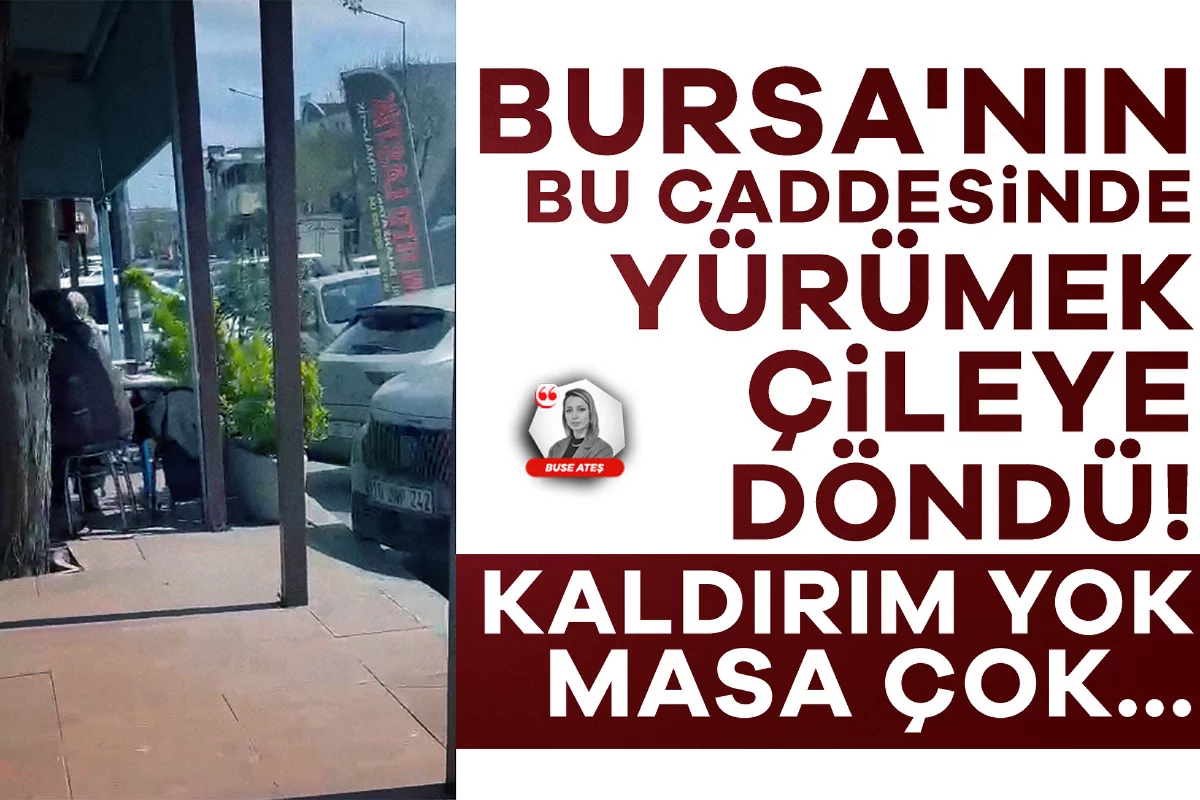 Bursa'nın Yıldırım ilçesine bağlı Karlıdağ Caddesi adeta yayalara kapandı. Araçların yol kenarına park etmesi ve işletmelerin kaldırımları masa-sandalyelerle işgal etmesi vatandaşları isyan ettirdi.