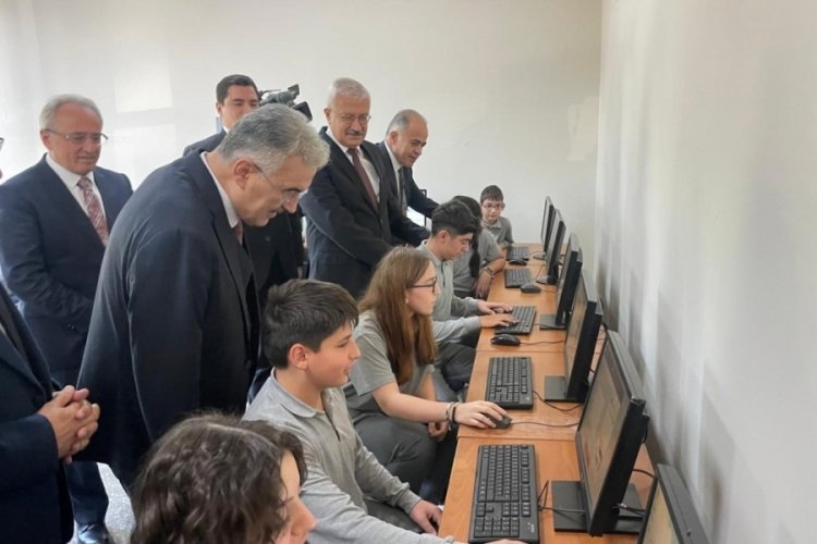 Bilişim sınıfının kurdelası protokol ve çocukların katılımıyla yapıldı. Vali Erol Ayyıldız ve Cumhuriyet Başsavcısı Ramazan Solmaz bilişim sınıfını gezip çocuklarla sohbet ettiler.