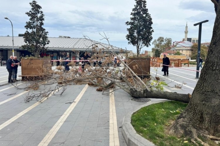 Bursa'da sabah saatlerinden itibaren etkili olan lodos, şehir merkezinde hayatı olumsuz etkiledi. Osmangazi Meydanı'nda şiddetli rüzgar nedeniyle bir ağaç kırılarak yola devrildi.