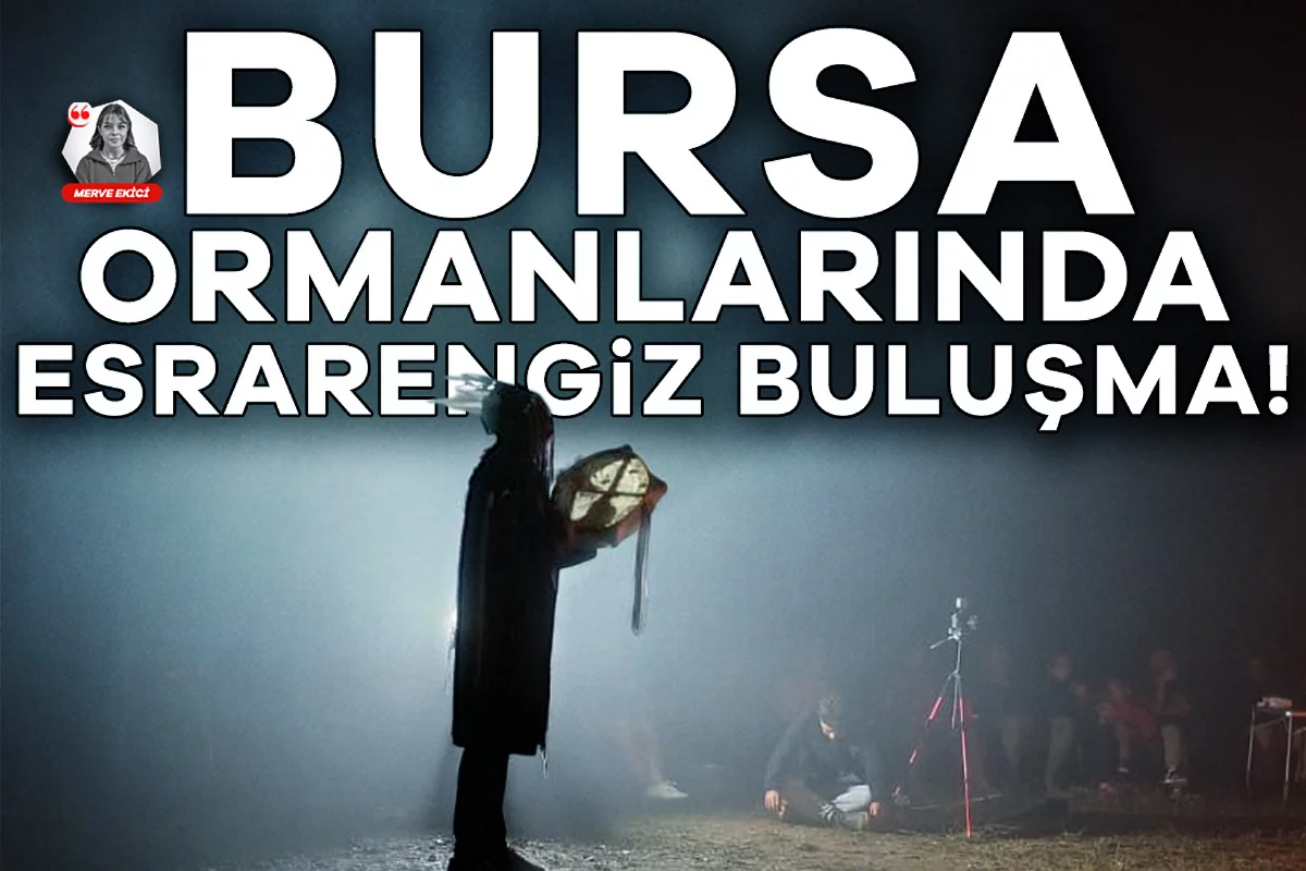 Bursa'nın Nilüfer ilçesine bağlı Dağyenice'de ormanlık alanda dev ateş yakıp etrafında toplanan grubun gerçekleştirdiği 'Şaman ayini' kameraya yansıdı