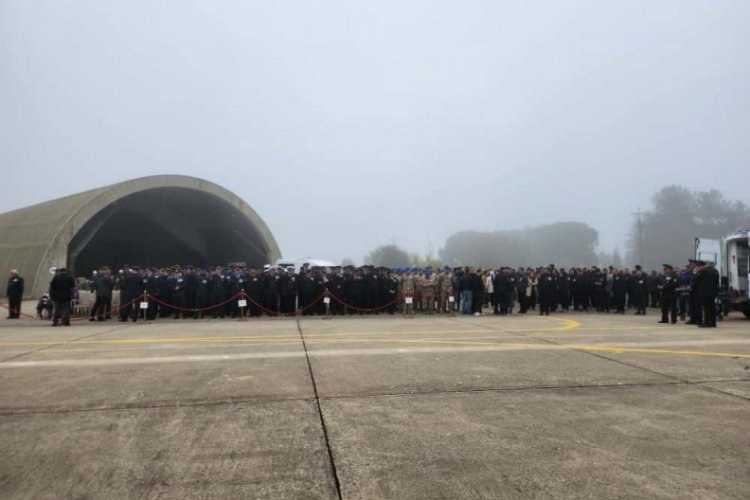 Gürcistan-Azerbaycan sınırında düşen Türk Hava Kuvvetleri'ne ait C-130 tipi askeri kargo uçağında şehit olan 20 kahraman askerimizden ikisinin cenazesi Yenişehir Hava Meydan Komutanlığı'na getiriliyor.