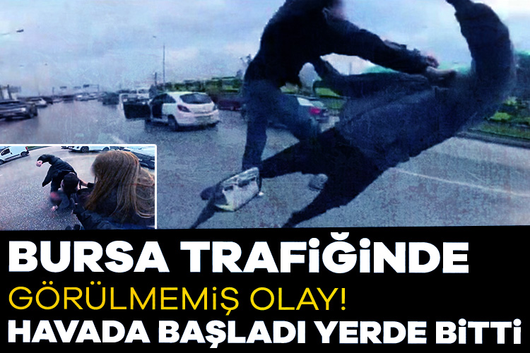 Bursa'nın Ankara Yolu Acemler mevkiinde henüz belirlenemeyen bir sebeple araçlarından inen taraflar arasındaki sözlü atışma saniyeler içinde kavgaya dönüşürken, bir sürücünün hasmına doğru araçların arasından fırlayarak attığı uçan tekme çevredekilere büyük şok yaşattı. Öfkenin kontrol edilemediği anlarda kavgayı ayırmak için çevredeki vatandaşlar ve bir motokurye büyük çaba sarf etti.