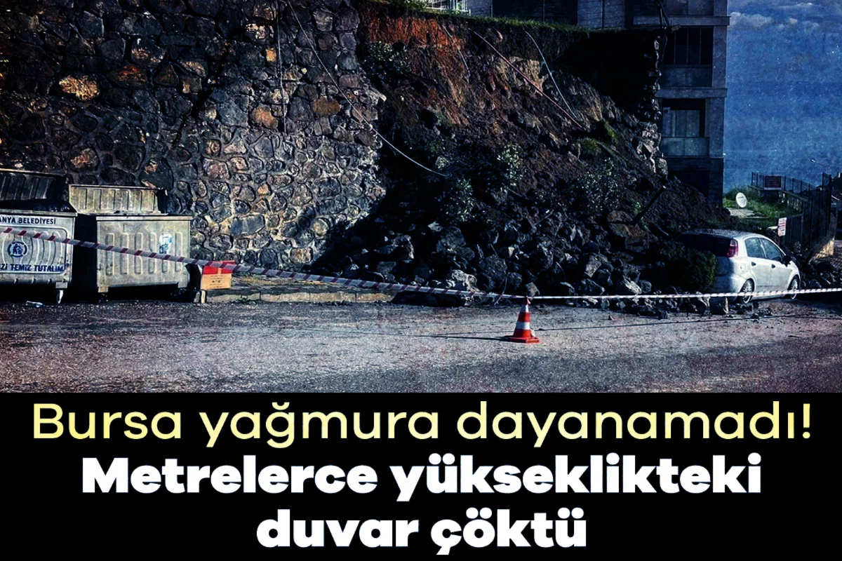 Bursa'nın Mudanya ilçesi Halitpaşa Mahallesi'nde saat 01.00 sıralarında, yağışın etkisiyle istinat duvarı çöktü. Yumurta Tepe Caddesi'nde bulunan Şan Sitesi'ne ait metrelerce yüksekliğindeki duvarın yıkılmasıyla park halindeki bir araç duvarın altında kalarak kullanılamaz hale geldi.