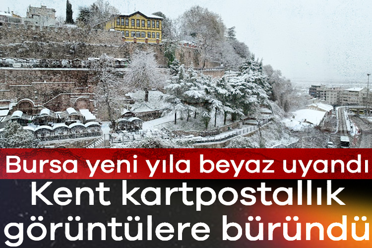 Bursa yeni yılın ilk gününe karla uyandı. Her yer bembeyaz olurken, şehrin simge noktaları dron ile görüntülendi.