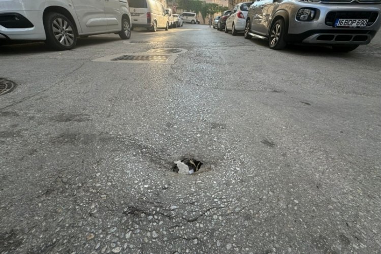 Yıldırım ilçesine bağlı Davutdede Mahallesi'nde yol ortasında oluşan göçük sürücüleri tehlikeye atıyor.