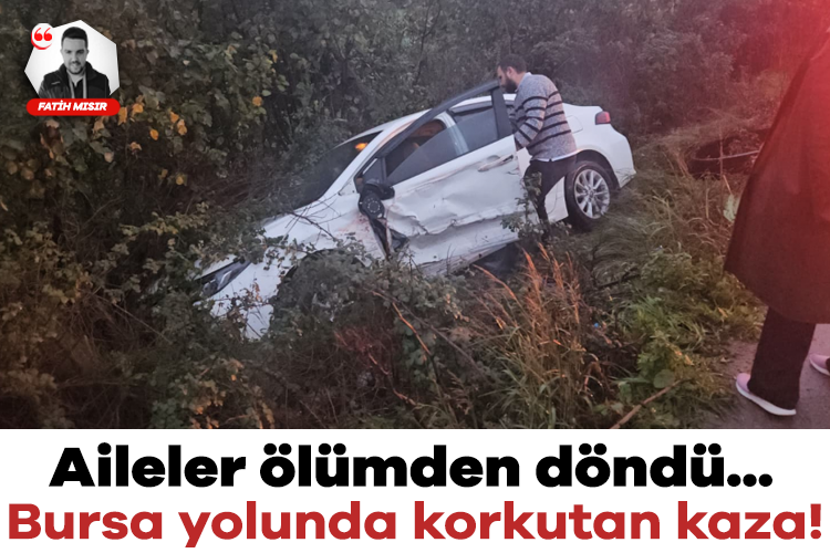 Bursa'da, Orhangazi - İznik yolu üzerinde meydana gelen trafik kazasında, karşı yönlerden gelen 2 otomobil çarpıştı. Kazada savrulan araçlardan biri yol kenarına uçarken iki araçta da bulunan aileler ölümden döndü.