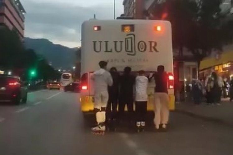 Diğer görüntülerde ise yine otobüsün arkasına tutunan ile kamyonetin kasasına asılarak ilerleyen gençler, 'pes' dedirtti. Kazaya davetiye çıkaran gençlerin ne zaman akıllanacağı ise sosyal medyada merak konusu oldu.