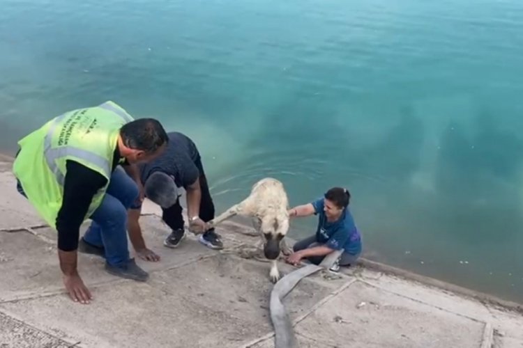 Uzun süren uğraşların ardından kanaldan çıkan çoban köpeği ardına bile bakmadan uzaklaştı.