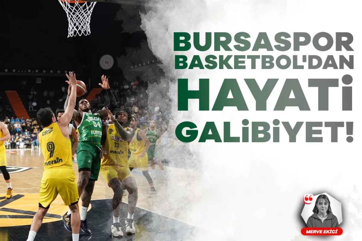 Bursaspor Basketbol, Türkiye Sigorta Basketbol Süper Ligi'nin 27. haftasında Servet Tazegül Spor Salonu'nda Mersin SK ile karşılaştı. Düşme hattında 14. sırada bulunan Bursaspor, geriden gelerek Mersin SK'yı 86-84 mağlup ederek kritik bir galibiyet elde etti.