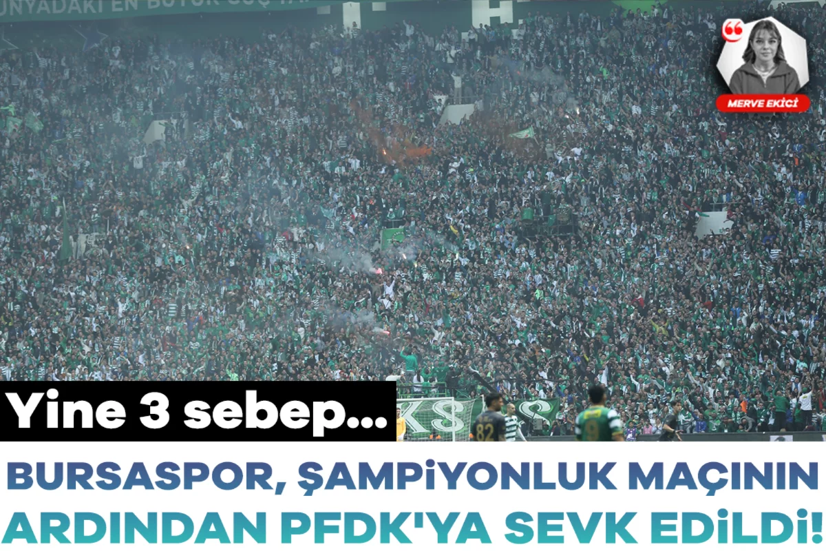 PFDK Hukuk Müşavirliği tarafından yapılan açıklamada, "BURSASPOR Kulübü'nün 19.04.2026 tarihinde oynanan BURSASPOR-SOMASPOR Nesine 2. Lig Kırmızı Grup müsabakasındaki " saha olayları" nedeniyle Futbol Disiplin Talimatı'nın 52. maddesi uyarınca, "usulsüz seyirci alınması" nedeniyle Futbol Disiplin Talimatı'nın 49. maddesi uyarınca ve "merdiven boşluklarının boş bırakılmaması" nedeniyle Futbol Disiplin Talimatı'nın 49. maddesi uyarınca PFDK'ya sevkine karar verilmiştir" ifadeleri yer aldı.