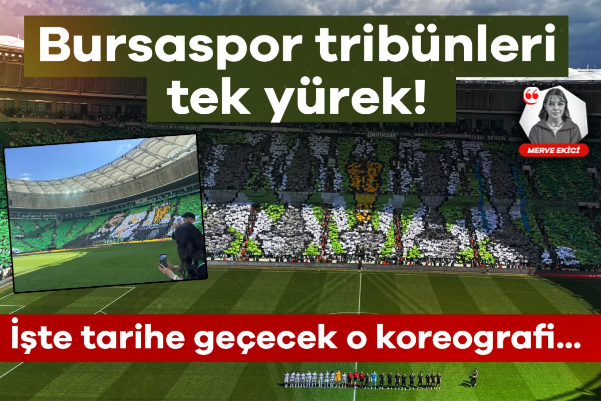 Bursaspor Başkanı Enes Çelik ve tüm profesyonel lig kupalarının yer aldığı anlamlı koreografide taraftarlar tek yürek oldu.
