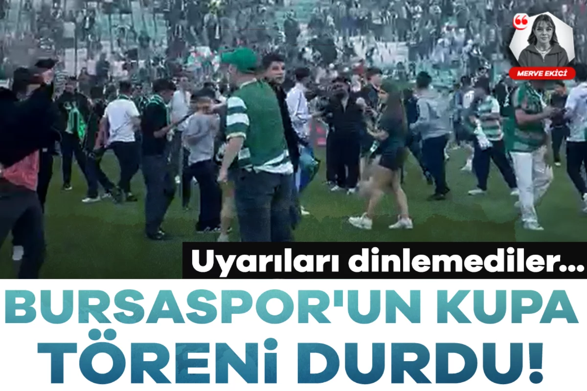 Bursaspor'un kupa töreninde taraftarların sahaya inmesi kutlamaları sekteye uğrattı.