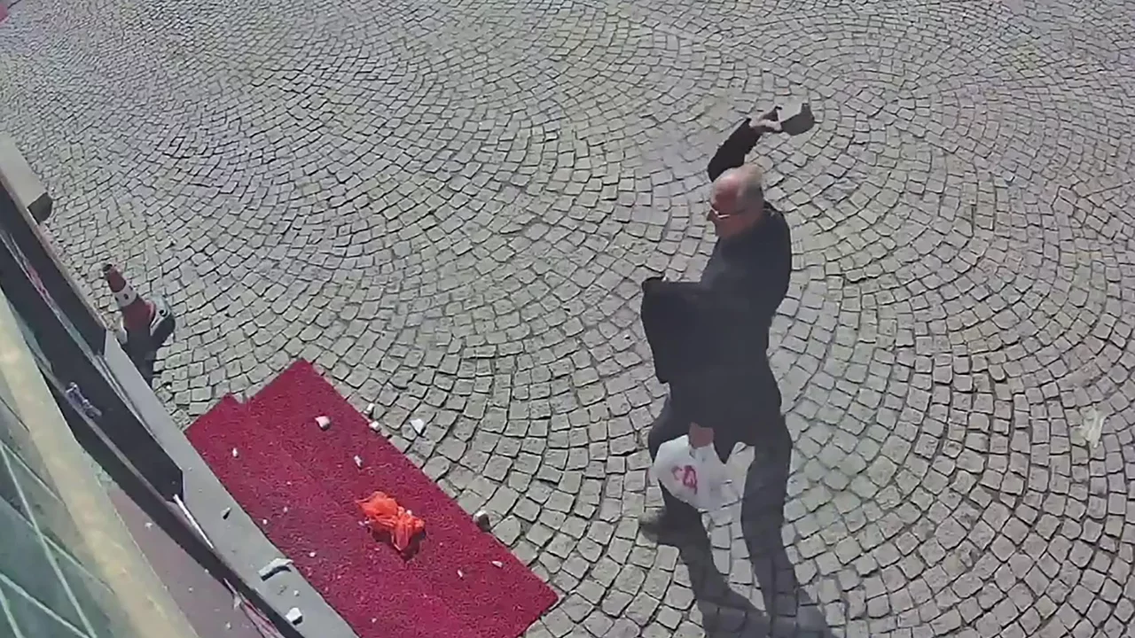 Erzurum'da bir kişi parke taşıyla camını kırdığı Türk Eczacılar Birliği (TEB) 2'nci Başkanı Abdullah Caner Güven'e ait eczaneyi ayçiçeği yağı döküp yakmaya çalışan Ö.Y. gözaltına alındı. Ö.Y.'nin eczacı olduğu belirlenirken, o anlar iş yerinin güvenlik kameralarına yansıdı.