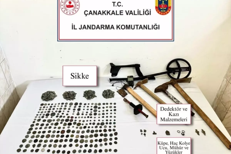 Çanakkale'de jandarma ekiplerince düzenlenen operasyonda, tarihi eser niteliğinde olduğu değerlendirilen çok sayıda malzeme ele geçirildi.
