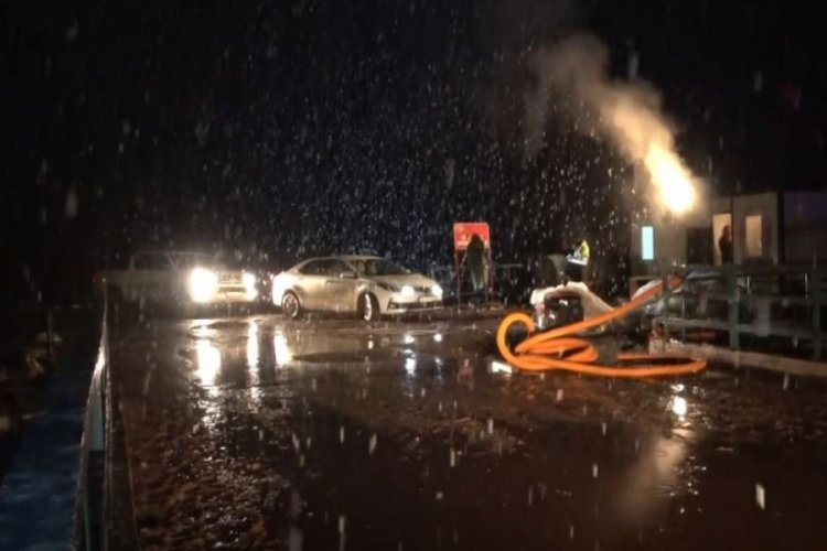 Uşak'ın Banaz ilçesinde Bahadır Göleti'nde meydana gelen su sızıntısını gidermek amacıyla çalışmaların devam ettiği bölgede yağan şiddetli yağmur yerini yoğun kar yağışına bıraktı.