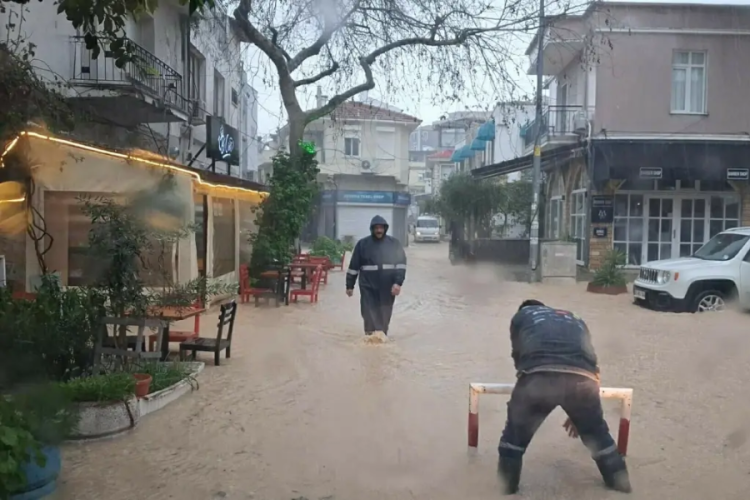 Meteoroloji 2'nci Bölge Müdürlüğü'nün uyarısının ardından Çeşme ilçesinde sabah saatlerinden itibaren sağanak etkili oldu. Yağış nedeniyle çok sayıda noktada su birikintileri oluşurken, bazı ev ve iş yerlerini su bastı, rögarlar da taştı. İlçede yüksek kesimlerden akan çamurlu su nedeniyle denizin rengi kahverengiye döndü. Belediye ekipleri ve bölge halkı, suların tahliyesi için çalışma yaptı.