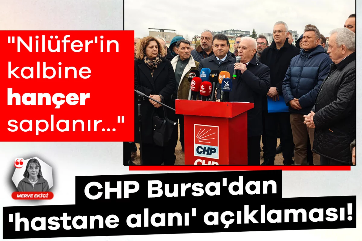 Cumhurbaşkanı Kararı ile bazı sağlık alanlarının satışa açılmasına yönelik düzenleme, kamuoyunda tartışma yarattı. Bursa'nın Nilüfer ilçesine bağlı Fatih Sultan Mehmet Bulvarı'nda bulunan ve sosyal etkinlikler düzenlenen alanında satışa çıkarılması hakkında basın açıklaması gerçekleştiren Cumhuriyet Halk Partisi Bursa İl Başkanlığı Fatih Sultan Mehmet Bulvarı'ndaki Hastane Alanı'nda bir araya gelerek karara tepki gösterdi.
