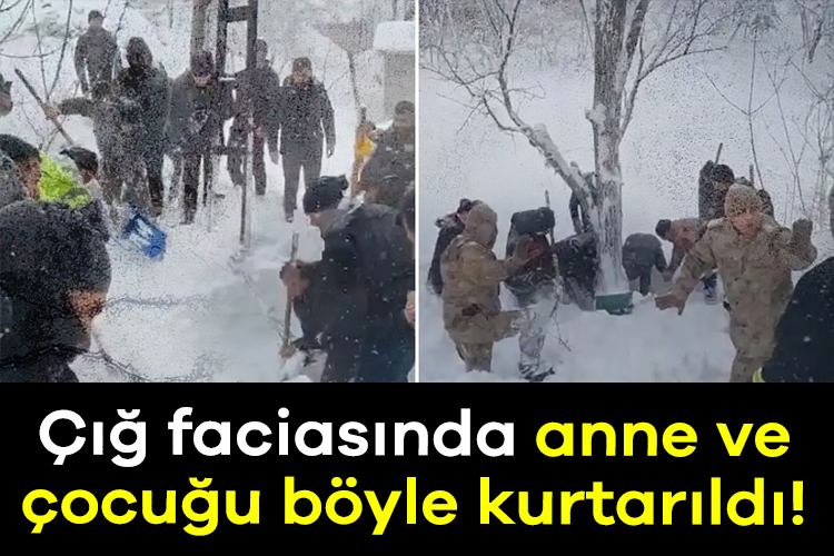 Çığ altında kalan anne ve 2 çocuğu ekiplerin çalışması sonucu kurtarıldı.