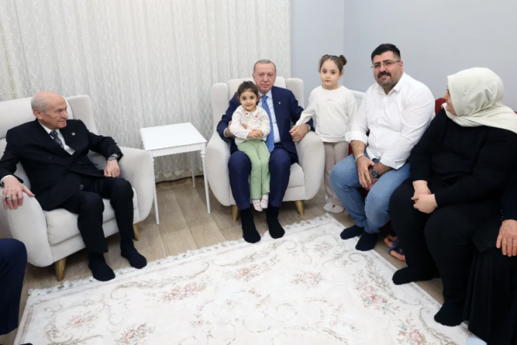 Erdoğan, Hatay programı kapsamında 600 Konutlar Sitesi'nde, depremzede Karakuş ailesinin yeni evine konuk oldu.