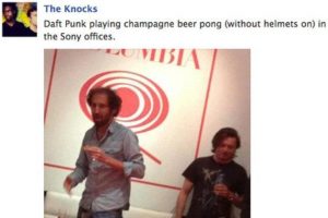 New York'taki Sony/Columbia ofisindeki etkinliğe katılan ikili, ABD'li The Knocks grubu üyeleri tarafından görüntülendi. Fotoğrafı Facebook'ta paylaşan New York merkezli grubun hayranları, ekran görüntüsü alarak Daft Punk üyelerini kasksız gösteren fotoğrafı Tumblr'da paylaştı.