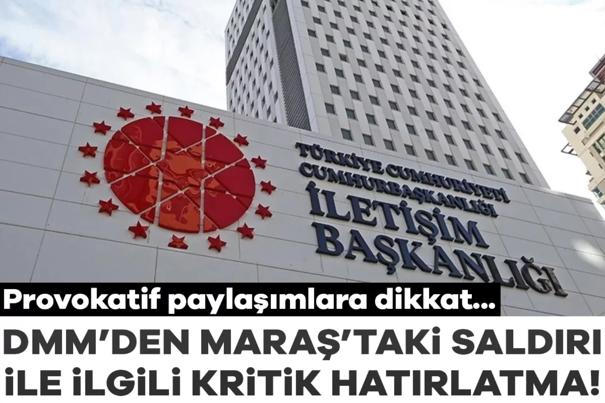 DMM'nin sosyal medya hesabından yapılan paylaşımda, "Kahramanmaraş'ta meydana gelen üzücü hadiseyi istismar ederek; devlet-millet bağını zayıflatmayı, kamu kurumlarımızı zan altında bırakmayı, dezenformasyonlar ve provokasyonlar üzerinden toplumsal bir kırılma oluşturmayı amaçlayan içeriklerin dolaşıma sokulduğu tespit edilmiştir. Halkımızın hassasiyetlerini sömürerek bir algı operasyonu ve psikolojik harekat yürüten bu odaklara karşı devletimizin tüm ilgili birimleri, toplumsal düzenin korunması amacıyla tam bir eş güdüm içerisinde teyakkuz halindedir. Kirli bilgi yayarak toplumsal huzuru tehdit eden, toplumu kin ve düşmanlığa sevk eden ve provokatif içerik üreten tüm şahıs ve içerikler hakkında gerekli adli süreçler ve teknik incelemeler ilk andan itibaren başlatılmıştır. Vatandaşlarımızın, kara propaganda ve psikolojik harp amacı taşıyan paylaşımlara itibar etmeyip hassas olması; yalnızca yetkili makamlarca yapılan resmi açıklamaları esas alması kritik önem arz etmektedir" ifadelerine yer verildi.
