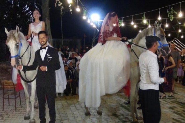 Mersin'in Silifke ilçesinde 2 yıl önce trafik kazasında babasını kaybeden Düriye Duygu Gür, babasının vasiyeti üzerine at sırtında gelinlikle düğün salonuna geldi.
