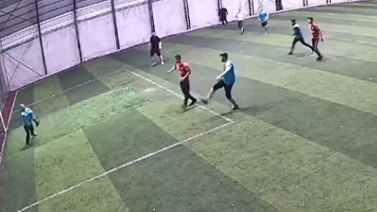 Olay, halı sahanın güvenlik kamerasınca kaydedildi.