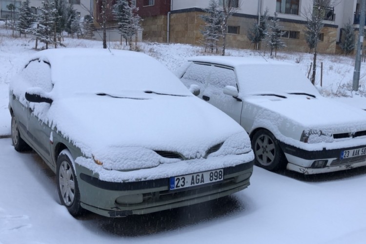 Meteorolojinin uyarı yaptığı Elazığ'da kar yapışı etkili oldu. Kent beyaza bürünürken, bazı araçlar yolda kaldı.