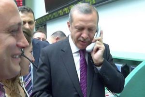Burada borsa çalışanlarıyla sohbet eden Erdoğan, Borsa İstanbul'un hayırlı olmasını diledi.