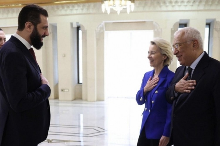 Avrupa Birliği (AB) Komisyonu Başkanı Ursula von der Leyen, AB Konseyi Başkanı Antonio Costa ile Suriye'nin başkenti Şam'a yaptıkları ilk ziyarette, yeniden inşa ve toparlanma sürecinde ülkeyi destekleyecekleri mesajını verdi.