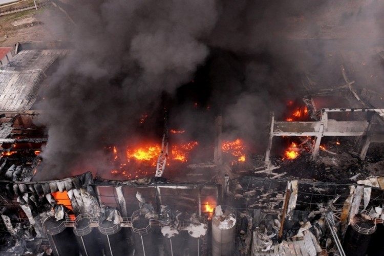 Öte yandan yanan fabrikanın son durumu dronla görüntülendi.