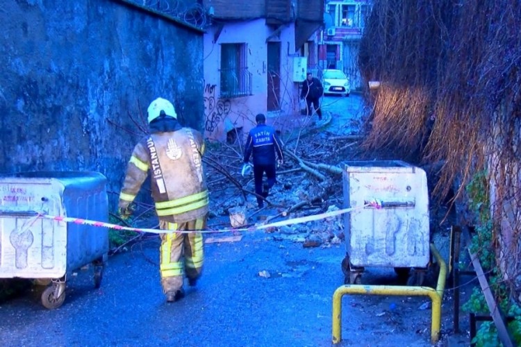 İstanbul genelinde etkili olan yağış nedeniyle Fatih'te istinat duvarı çöktü. Olayın ardından trafiğe kapatılan sokakta ekipler yola dökülen parçaları kaldırmak için çalışma başlattı.