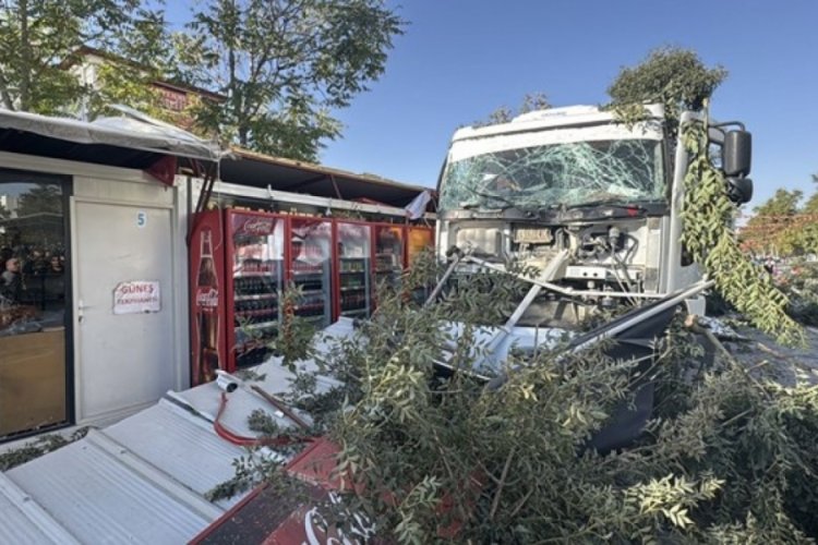 Malatya'nın Yeşilyurt ilçesinde bir kamyon, freni arızalanınca yol kenarındaki 7 konteyner iş yerine çarptı.