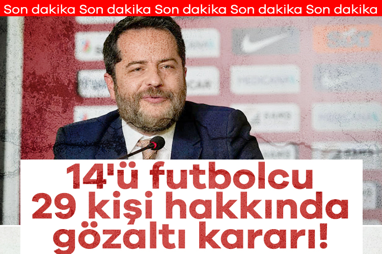 Türkiye'yi sarsan futbolda bahis soruşturması derinleşiyor. 14'ü futbolcu 29 kişi hakkında gözaltı kararı verilirken, düzenlenen operasyonla eski Galatasaray Yöneticisi Erden Timur dahil 24 şüpheli gözaltına alındı. Öte yandan gözaltı kararı verilen isimler de belli oldu.