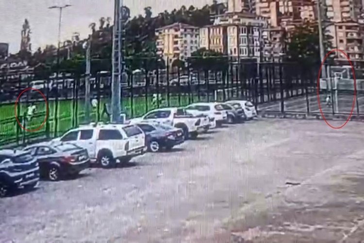 Rize'de oynan Veteranlar Ligi karşılaşmasında Pazarsporlu oyuncu Mustafa Bayar'ın kaleye çektiği şutta top sahanın dışına çıkarak yan tarafta yer alan basket potasına girdi.