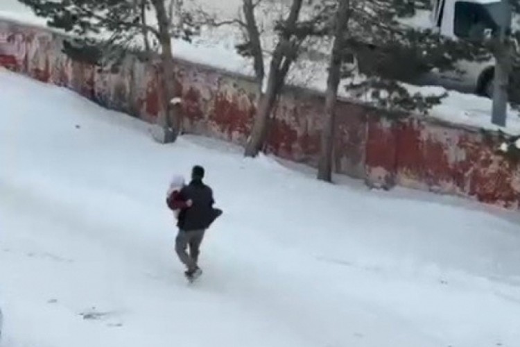 Kars hava sıcaklıklarının düşmesiyle birlikte kara büründü. Yollarda araçlarla gitmenin zorlaştığı bir iklimde bir genç, hastalanan annesini Halk Sağlığı Merkezi'ne kucaklayarak ulaştırdı.