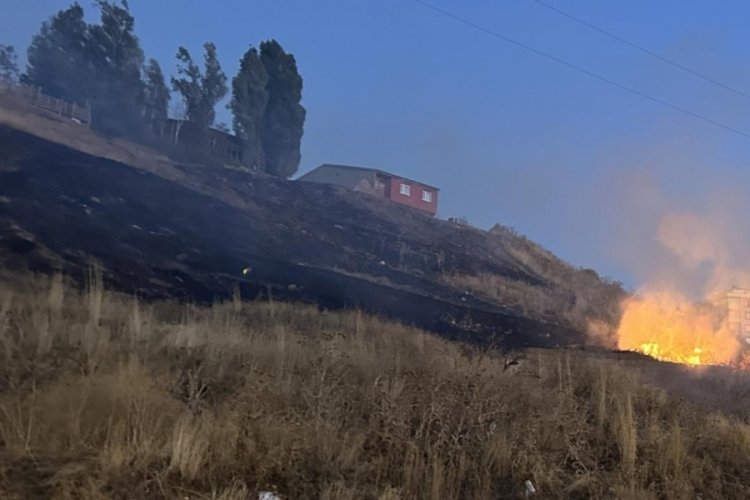 Yangın, otluk alana yayılırken ihbar üzerine olay yerine itfaiye ve polis ekipleri sevk edildi.