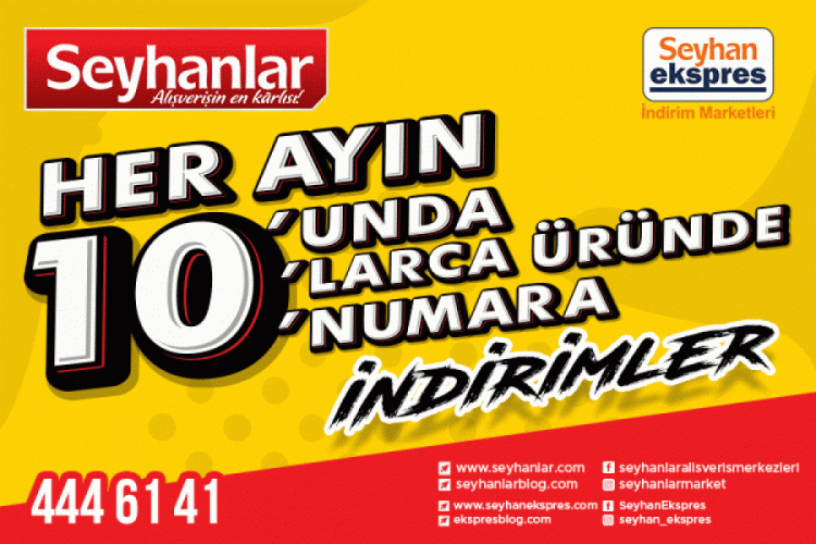 Bursa'da Seyhanlar ve Seyhan Ekspresler, seçili ürünlerde yüzde 10 indirim ile her ayın 10'inde sizi bekliyor.