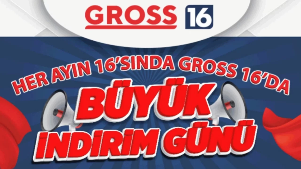 Bursa'da GROSS 16 seçili ürünlerde her ayın 16'sında indirime gidiyor.