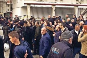 Adliye önünde toplanan yakınları Saral zırhlı araca bindirilirken ve adliyeden ayrılırken, alkışlayarak, 'Adamsın', 'Allah'ına kurban' diye tezahürat yaptılar.