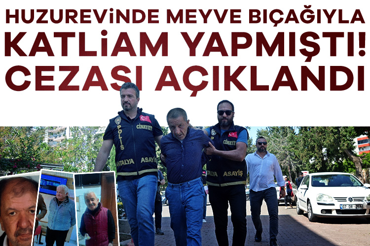 Antalya'da yaklaşık 4,5 yıldır kaldığı huzurevinden hakkında tutulan tutanak nedeniyle çıkartılacağı gün 3 kişiyi meyve bıçağıyla öldürmekten yargılanan sanık, 3'er kez ağırlaştırılmış müebbet hapis cezasına çarptırıldı. Mahkeme, cezada herhangi bir indirim uygulamadı.