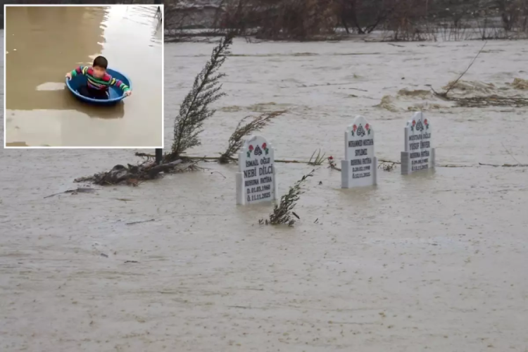 ADANA'DA MEZARLAR SULAR ALTINDA KALDI